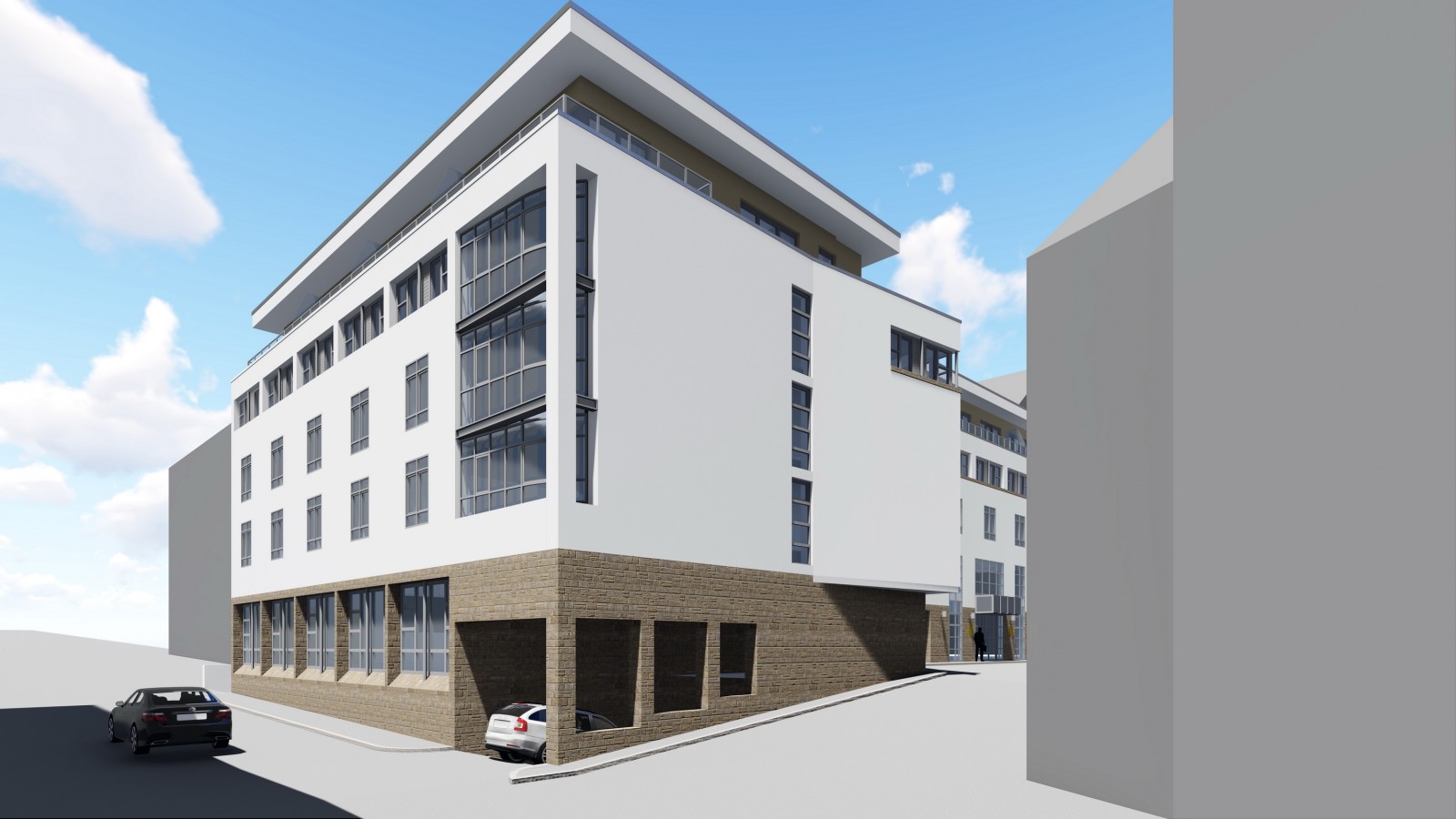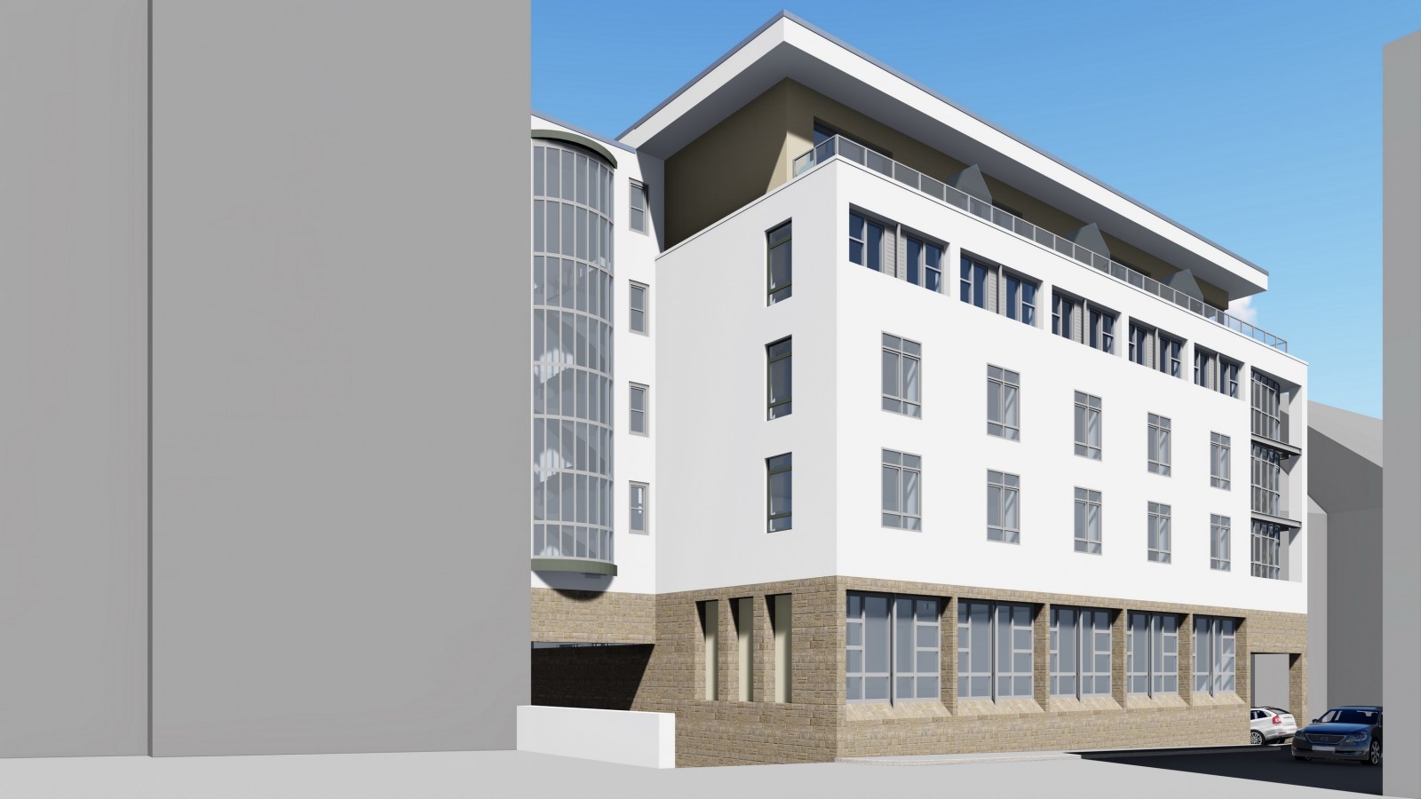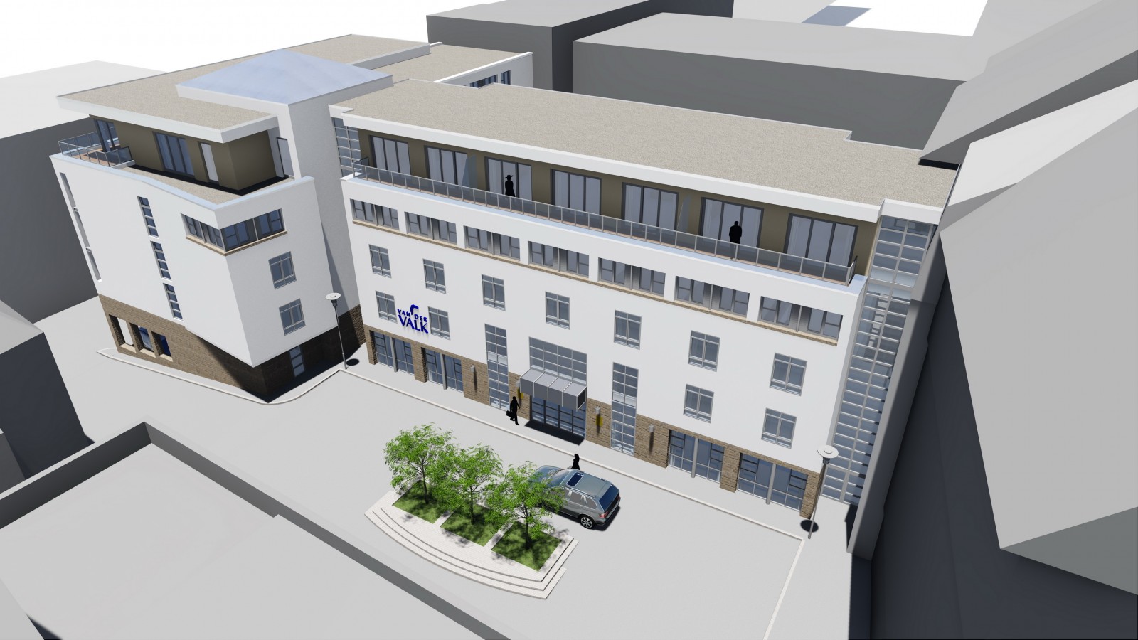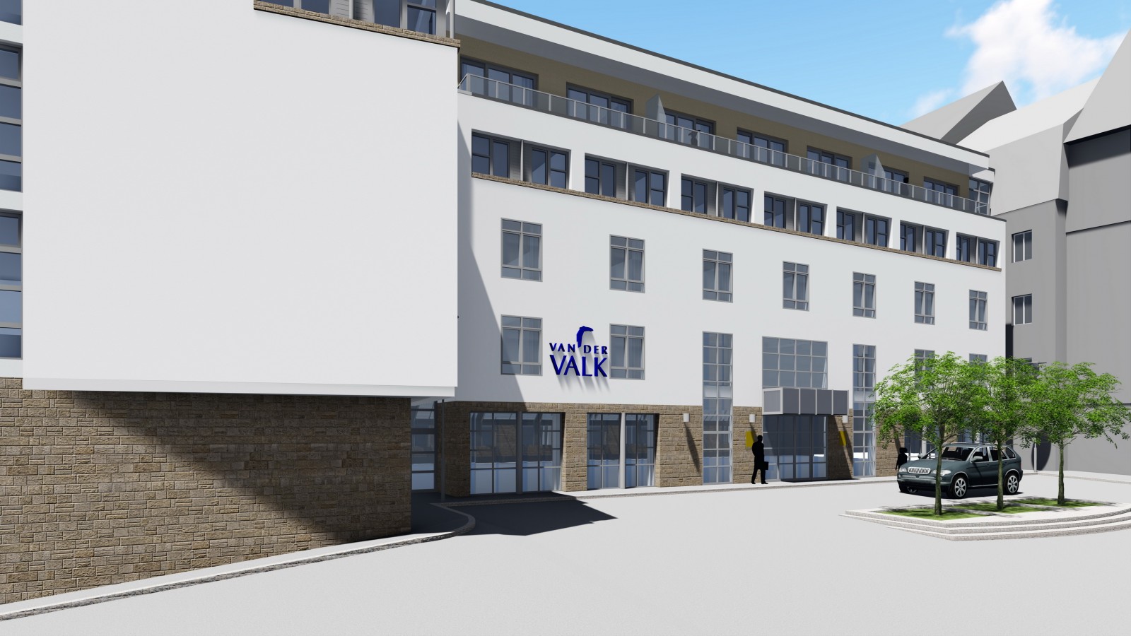 Das Van der Valk Hotel am Hildesheimer Marktplatz will sich vergrößern. Da im Innenstadtbereich kaum Platz zur Verfügung steht, blieb nur die Möglichkeit durch eine Aufstockung zusätzliche Zimmer zu schaffen. Die Aufstockung mit auskragendem Flachdach ergänzt zurückhaltend den Bestand und bietet gemeinsam mit einem Anbau Platz für 15 neue Zimmer und Suiten. Die neuen Zimmer im 4. Obergeschoss erhalten zudem private Dachterassen.