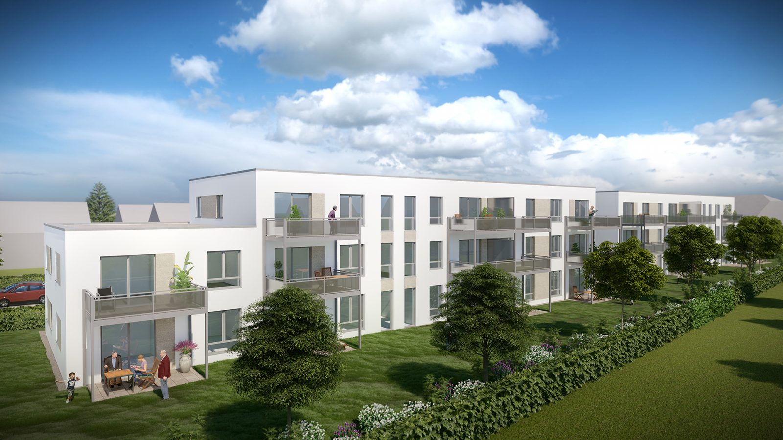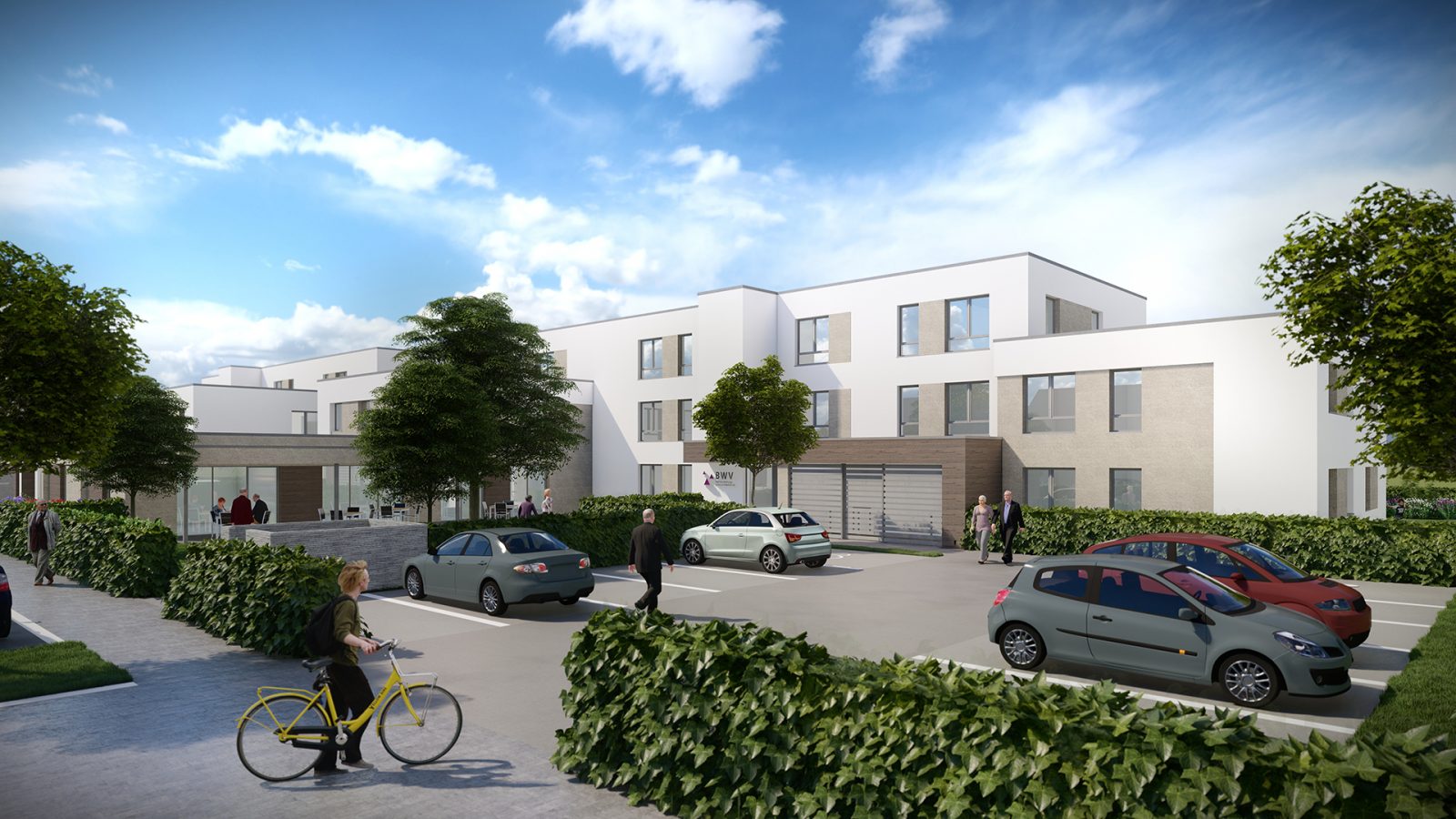 Ein Neubau mit 30 Wohneinheiten und einer Tagespflege soll in Harsum entstehen. Die Zwei- und Dreizimmerwohnungen verteilen sich auf zwei Geäudeflügel und sind barriere- sowie stufenfrei erreichbar. Die Staffelung des Baukörpers lockert das Erscheinungsbild auf und bindet ihn so fließend in die Umgbung ein.