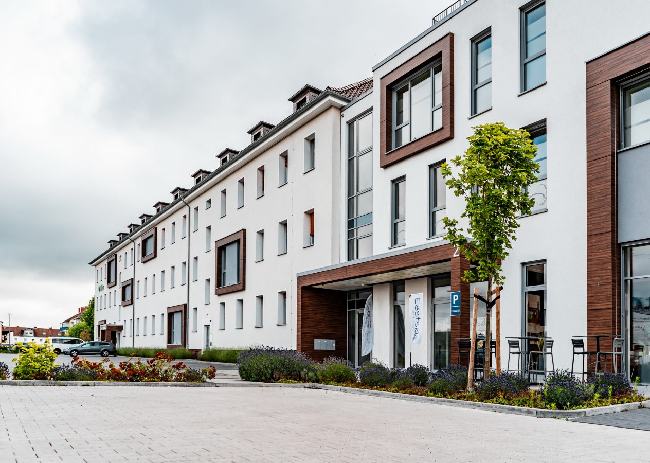 In Kooperation mit dem Helios Klinkum sind auf den fast 4000m² Nutzfläche eine Krankenpflegeschule, eine Elternschule, ein Patientenhotel sowie Praxis- und Büroräume entstanden. Eine Cafeteria im Erdgeschoss rundet die vielfältige Nutzungsstruktur des Gebäudes ab.