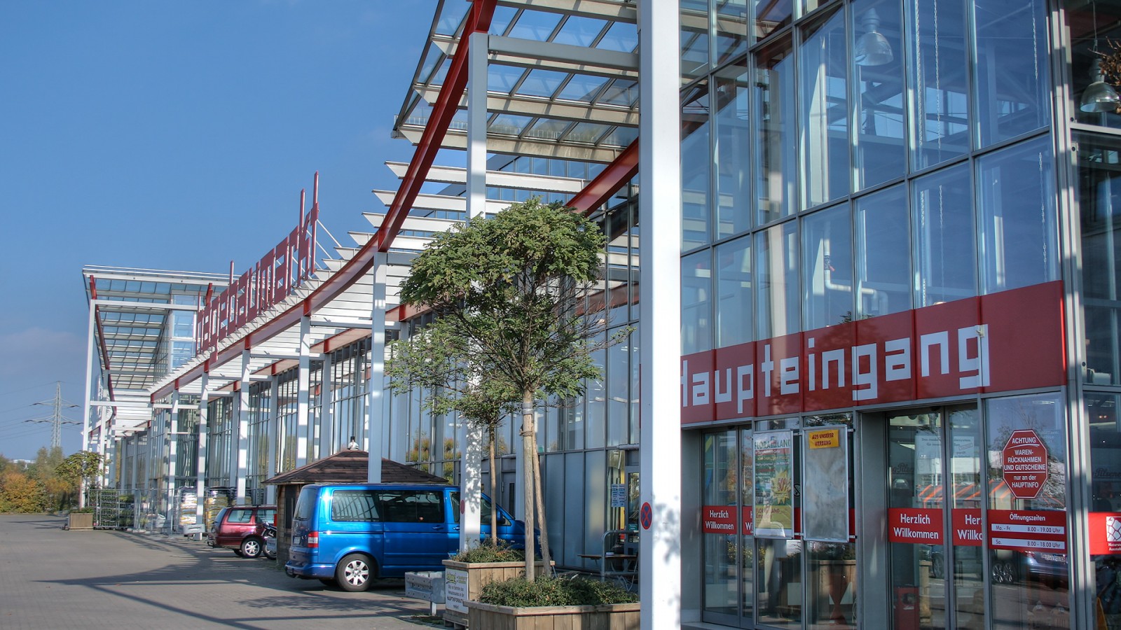 Mit Freiflächen und großem Außenlager ist eine Verkaufsfläche von ca. 15.000 m2 entstanden. Eintretende Sonnenstrahlung und gute Außenhautdämmung garantieren eine besonders günstige Energiebilanz.