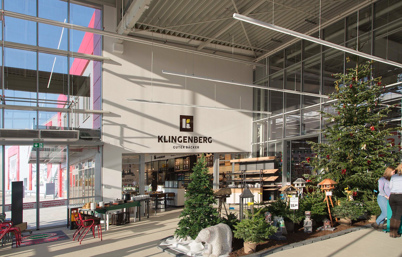 Auf einer Grundstücksfläche von insgesamt 30.000 Quadratmetern präsentiert sich der neue Hagebaumarkt in Holzminden. Im Inneren leiten große, lichtdurchfluteten Gänge durch den Baumarktes.