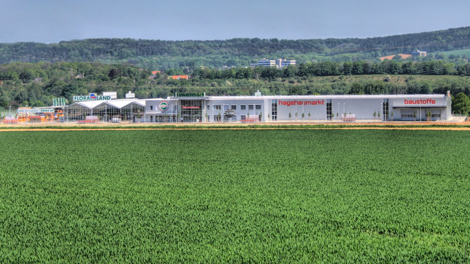 In Hildesheim – Ochtersum entstand in knapp sieben Monaten Bauzeit ein Hagebaumarkt und ein Gartenfachcenter mit 14.700 m2 überdachter Verkaufsfläche und einem