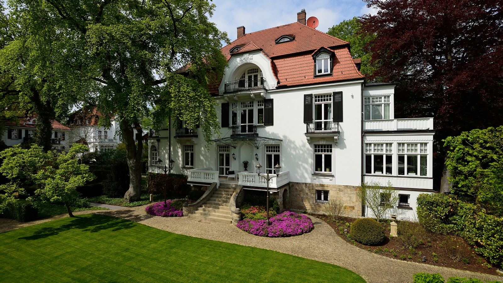 In einem der schönsten Stadtteile Hannovers liegt diese denkmalgeschützte Villa auf einem unvergleichbaren Eckgrundstück. Bei dem Umbau des Gebäudes wurde die Fassade saniert und in der Farbigkeit geändert, neue Bäder eingebaut, die Wohnräume im Erd- und 1. Obergeschoss neu gestaltet und im Dachgeschoss ein Büro eingerichtet.