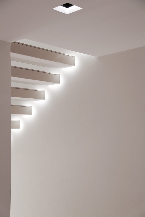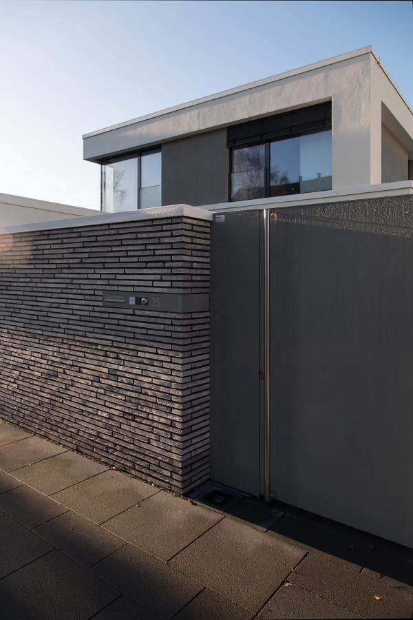 Die neu eingesetzten Materialien wurden sehr sparsam verwendet. So sind die weiß umlaufenden Bänder und Putzflächen, der Klinker am Eingang und die dunklen Aluminiumfenster prägend für das moderne Gebäude. Die Haustechnik, samt allen Zu- und Entwässerungsleitungen, sowie die Bäder wurden in dem Zuge der Sanierung erneuert.