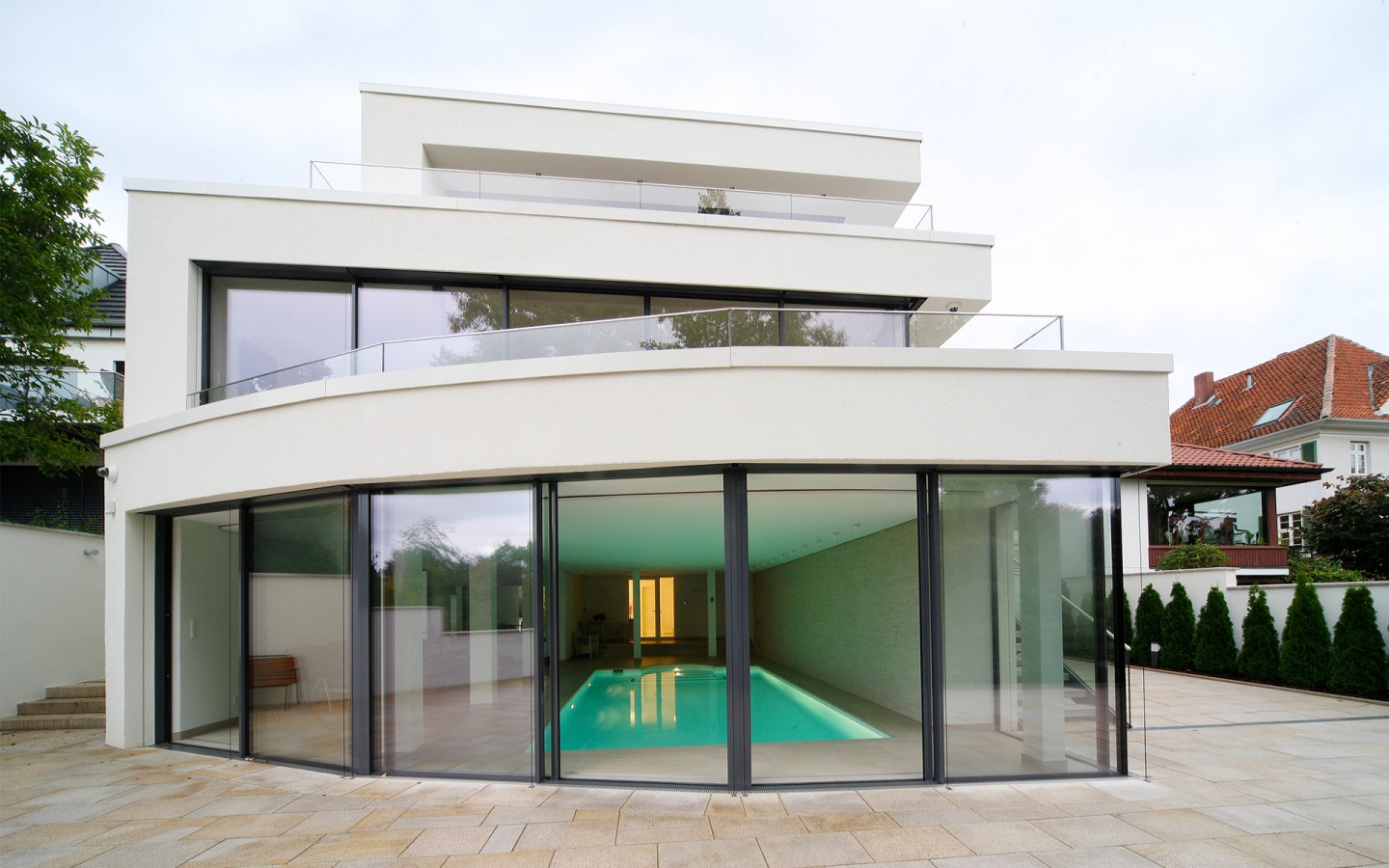 Das vorhandene Einfamilienhaus in Hildesheim wurde komplett umgebaut und um eine Etage aufgestockt. Ein Aufzug wurde bei der Baumaßnahme in das Gebäude integriert und ein Schwimmbad im Kellergeschoss eingebaut. Insgesamt entstand ein Haus von besonderem Reiz, mit einem schönen Ausblick, sehr großzügigen und hellen Räumen sowie Grundrisse, die in jeder denkbaren Lebenslage funktionieren.