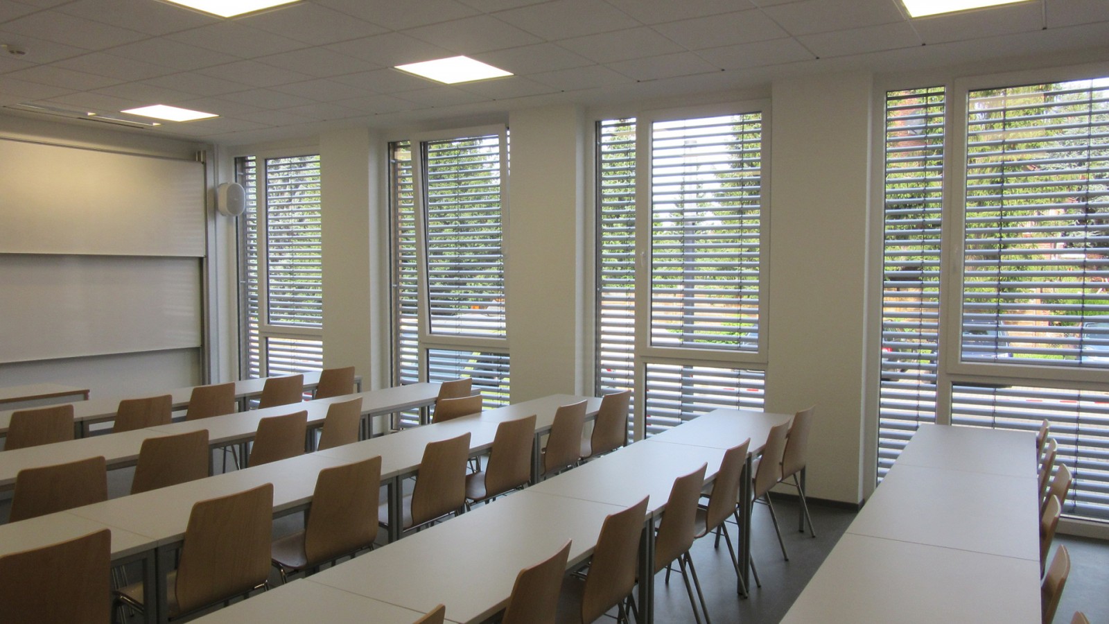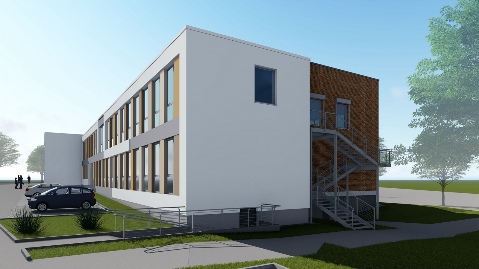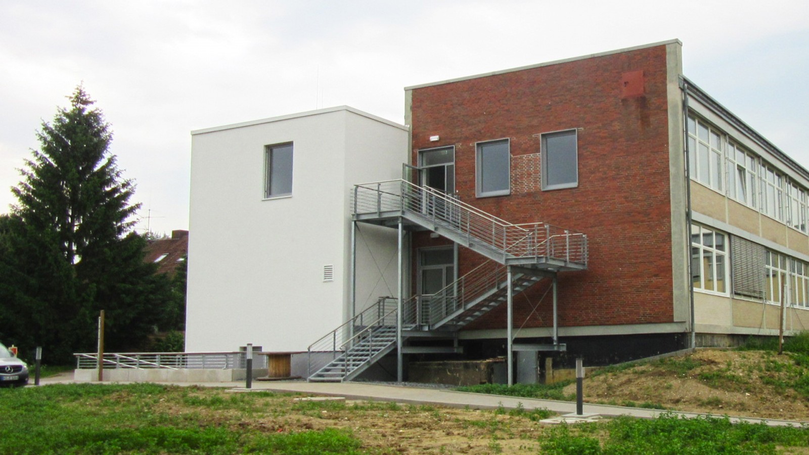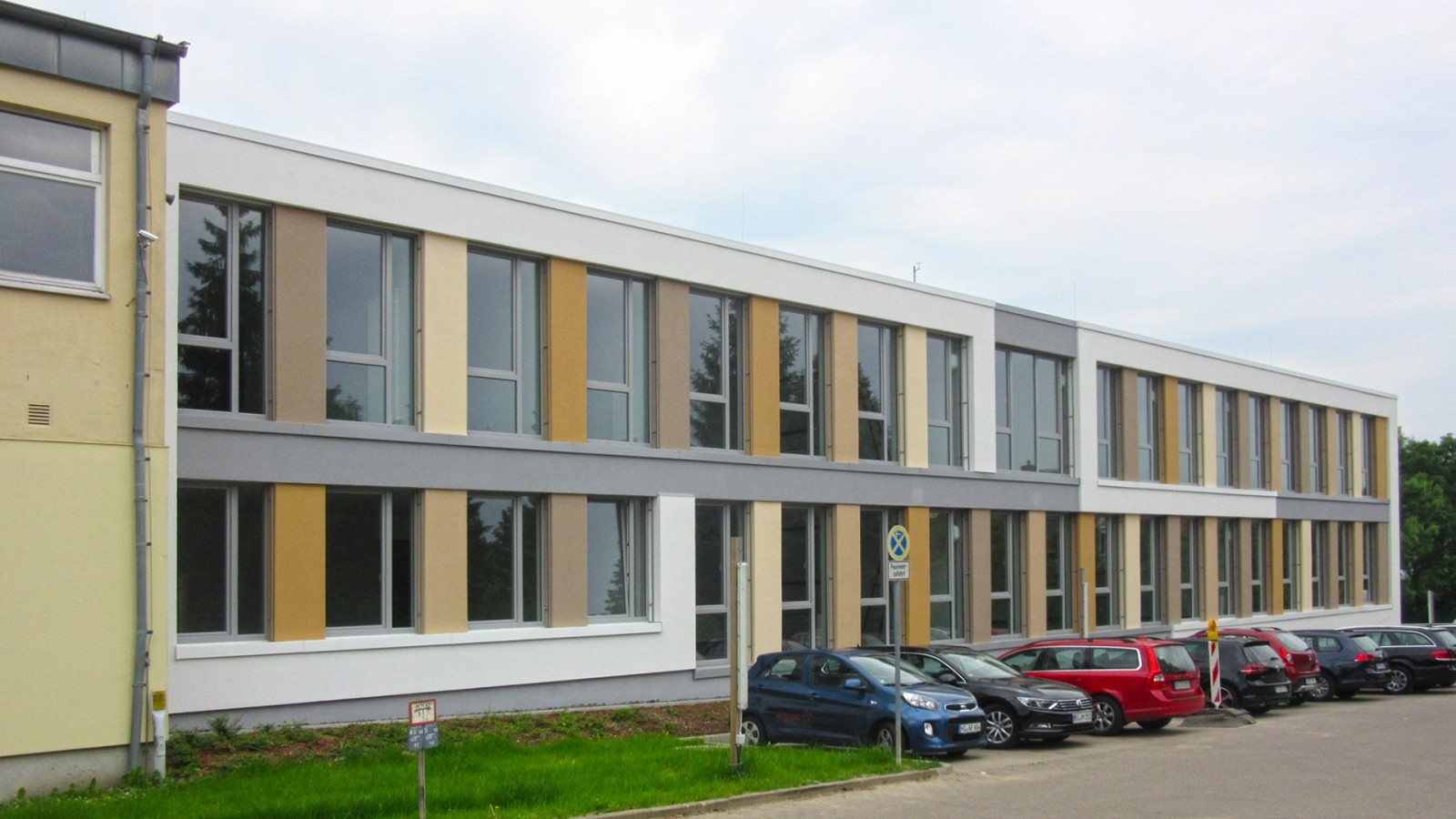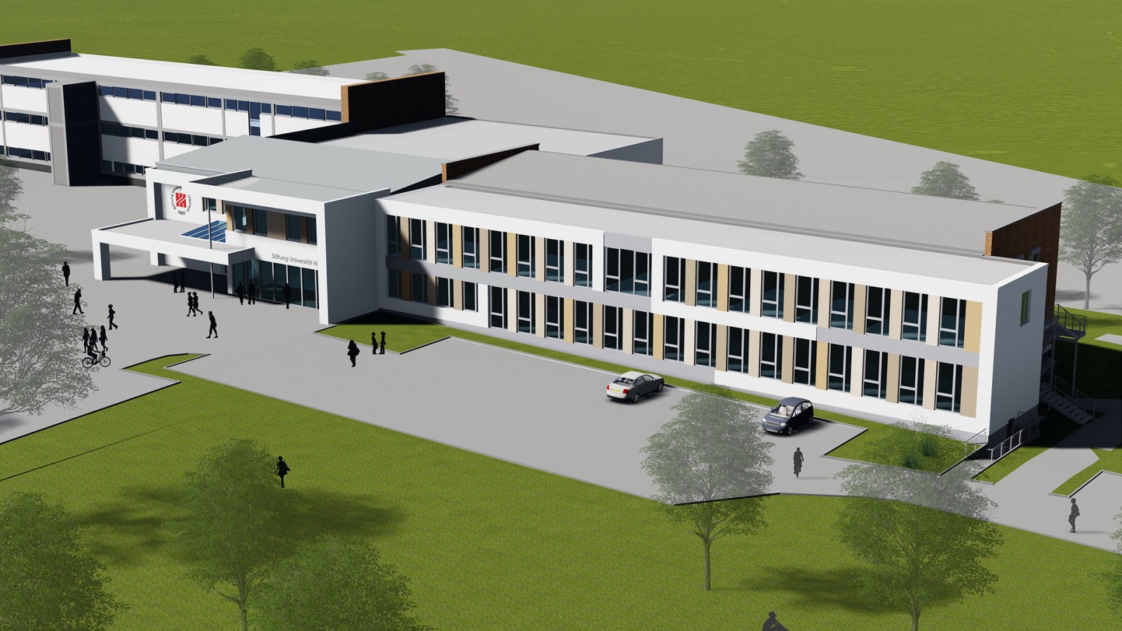 So entstand die Idee, an einen Teil der zweigeschossigen Bauten einen Anbau vorzusetzen. Durch den direkten Anschluss an die bestehenden Flure entstehen dringend benötigte Seminar- und Büroräume, ohne weitere Erschließungsflächen. Gleichzeitig verbessert sich die Energiebilanz, und die Liegenschaft erhält ein neues, modernes Gesicht.