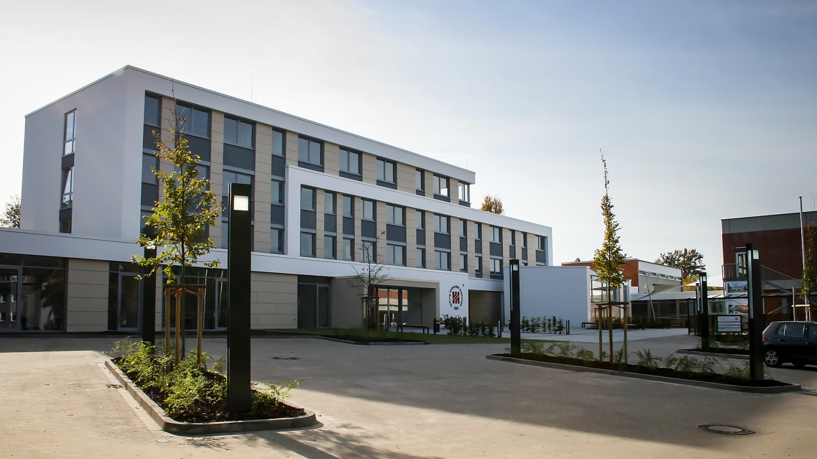 Neben dem Umbau und der Sanierung der Gebäude der ehemaligen Polizeifachschule mit einem neuen Café in einem bestehen Flurbereich, plante unser Büro einen Neubau mit ca. 2.100 m2 als Erweiterung der vorhandenen Gebäudestruktur.